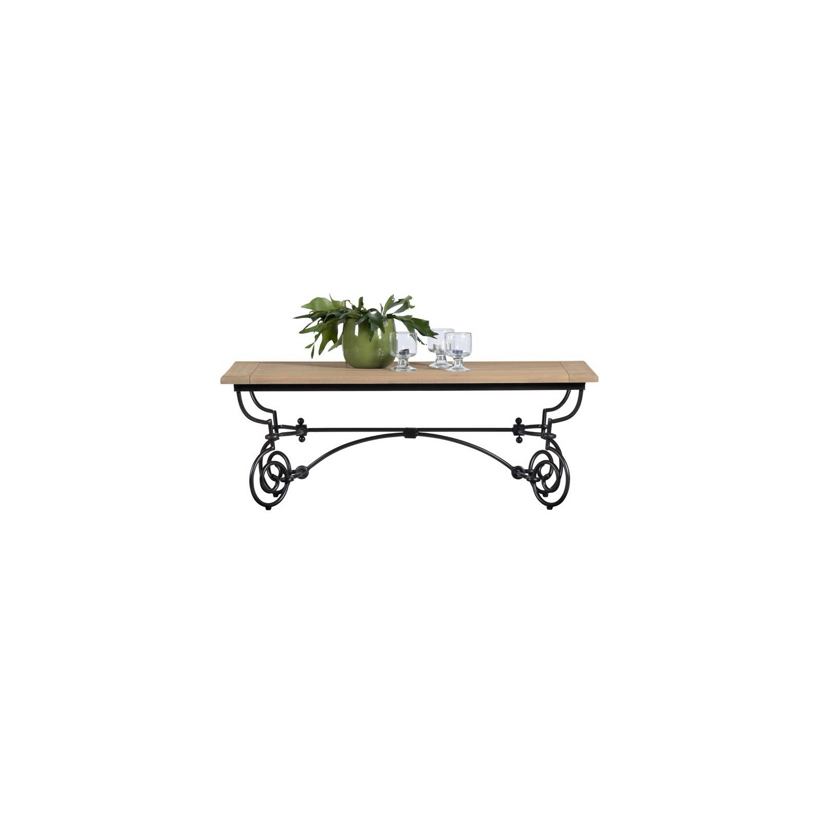 Vous cherchez une table basse avec pied en fer forgé rectangulaire élégante pour votre salon ou votre véranda ? Ce modèle Vérone est d'une grande beauté avec son piètement en fer forgé.
