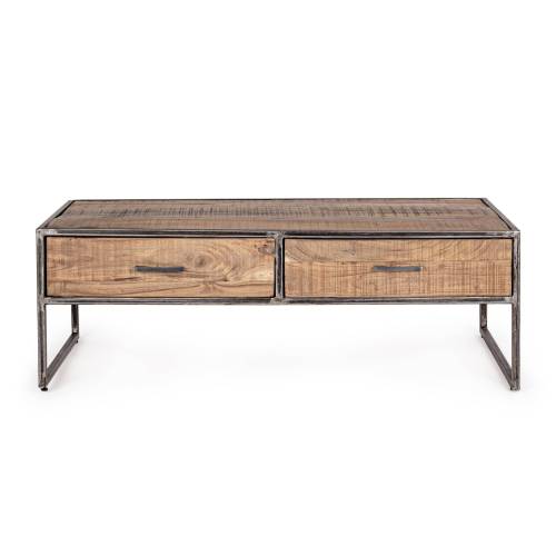 Plongez dans l'élégance fonctionnelle du style industriel chic avec la table basse avec rangement, en acacia et métal qui dispose de 2 tiroirs.