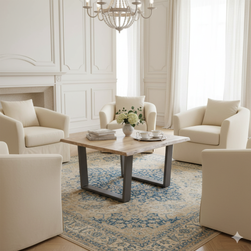 Avec ses dimensions de 100 cm de côté, cette table basse carrée offre une surface spacieuse pour accueillir vos livres, magazines, tasses de café et autres objets du quotidien. Son design carré lui confère une allure moderne et épurée, tandis que les matériaux utilisés lui donnent un aspect rustique et chaleureux. L'acacia massif, connu pour sa durabilité et sa beauté naturelle, confère à cette table basse une apparence authentique. Les variations naturelles du grain du bois ajoutent une dimension visuelle intéressante, faisant de chaque pièce un exemplaire unique. Le métal, quant à lui, ajoute une touche industrielle avec ses finitions robustes et ses détails soignés.