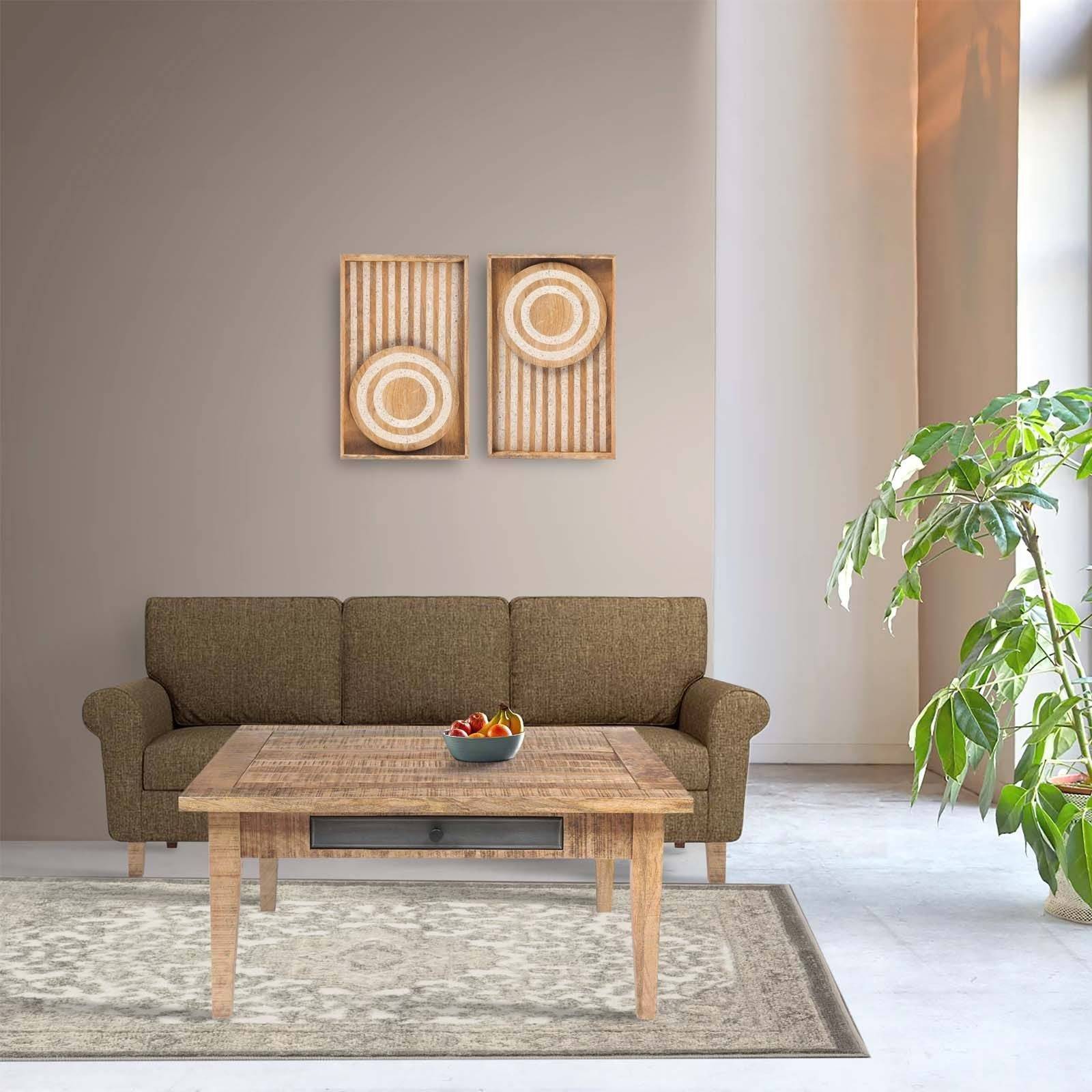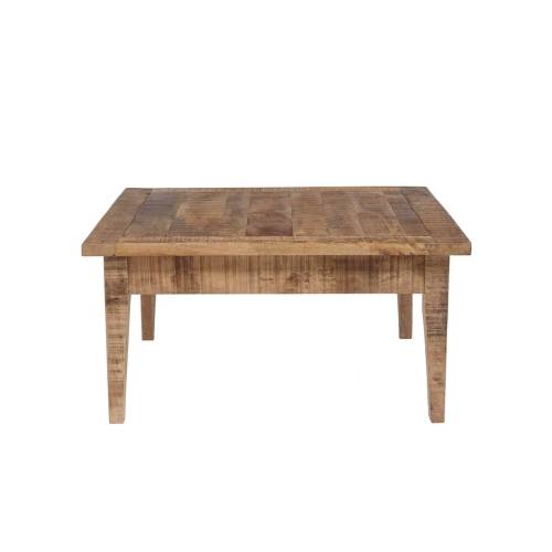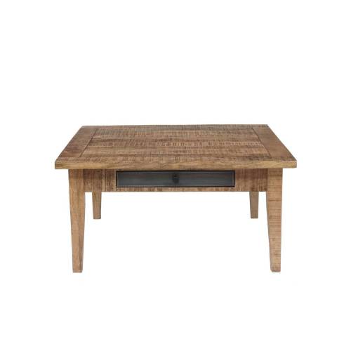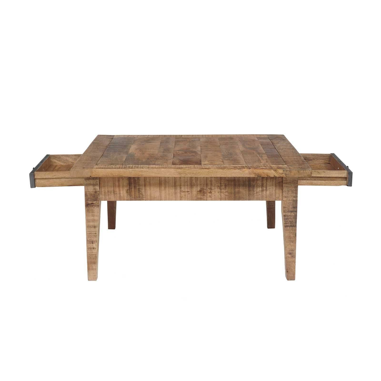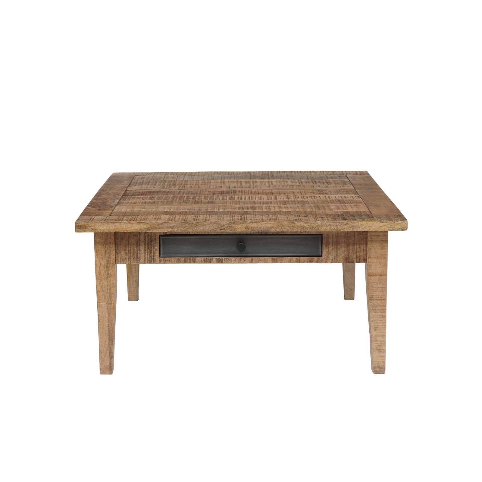 La table basse carrée 2 tiroirs de la collection Manguier Brut incarne l'élégance rustique avec une fusion parfaite de matériaux authentiques.