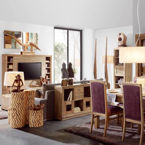 Une table basse carrée est un achat incontournable pour meubler votre salon ! Très pratique, ce modèle vous offre un espace de rangement pour vos revues grâce à ses deux tiroirs, de sorte que son plateau pourra être libéré pour accueillir un beau vase ou une statuette en bois flotté par exemple. Cette table basse carrée s'associera tout particulièrement bien avec de la déco exotique et notamment inspiré du style primitif africain.