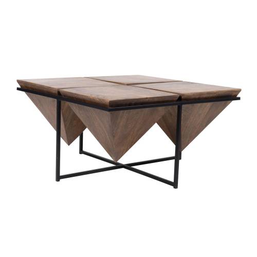 Plongez dans l'élégance contemporaine avec la table basse carrée pyramide qui marie l'artisanat exceptionnel du manguier avec un design novateur.
