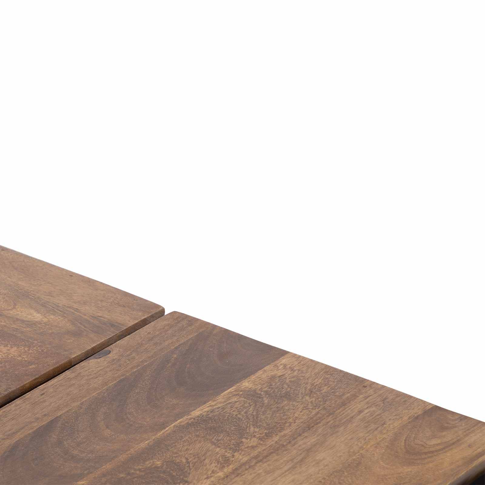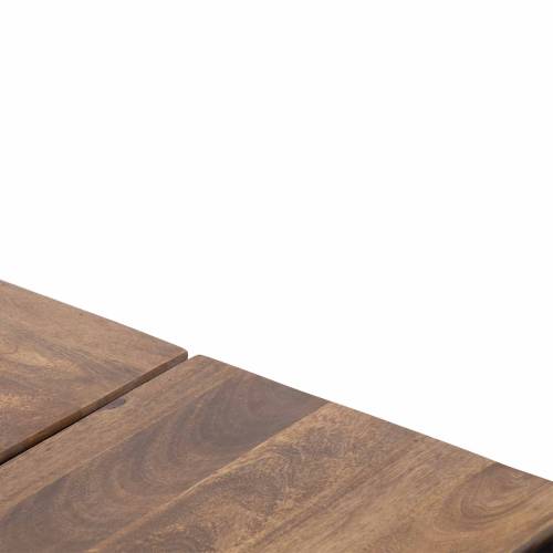 Son large plateau carré, formé de quatre pyramides artistiquement agencées, offre non seulement une surface généreuse pour vos articles de décoration préférés, mais crée également une esthétique visuelle captivante. Chaque angle révèle une harmonie entre le naturel du bois de manguier et la modernité du design pyramidal. Que vous receviez famille et amis pour une soirée conviviale ou que vous profitiez d'un moment de détente en solo, cette table basse sera le point focal de votre espace de vie.