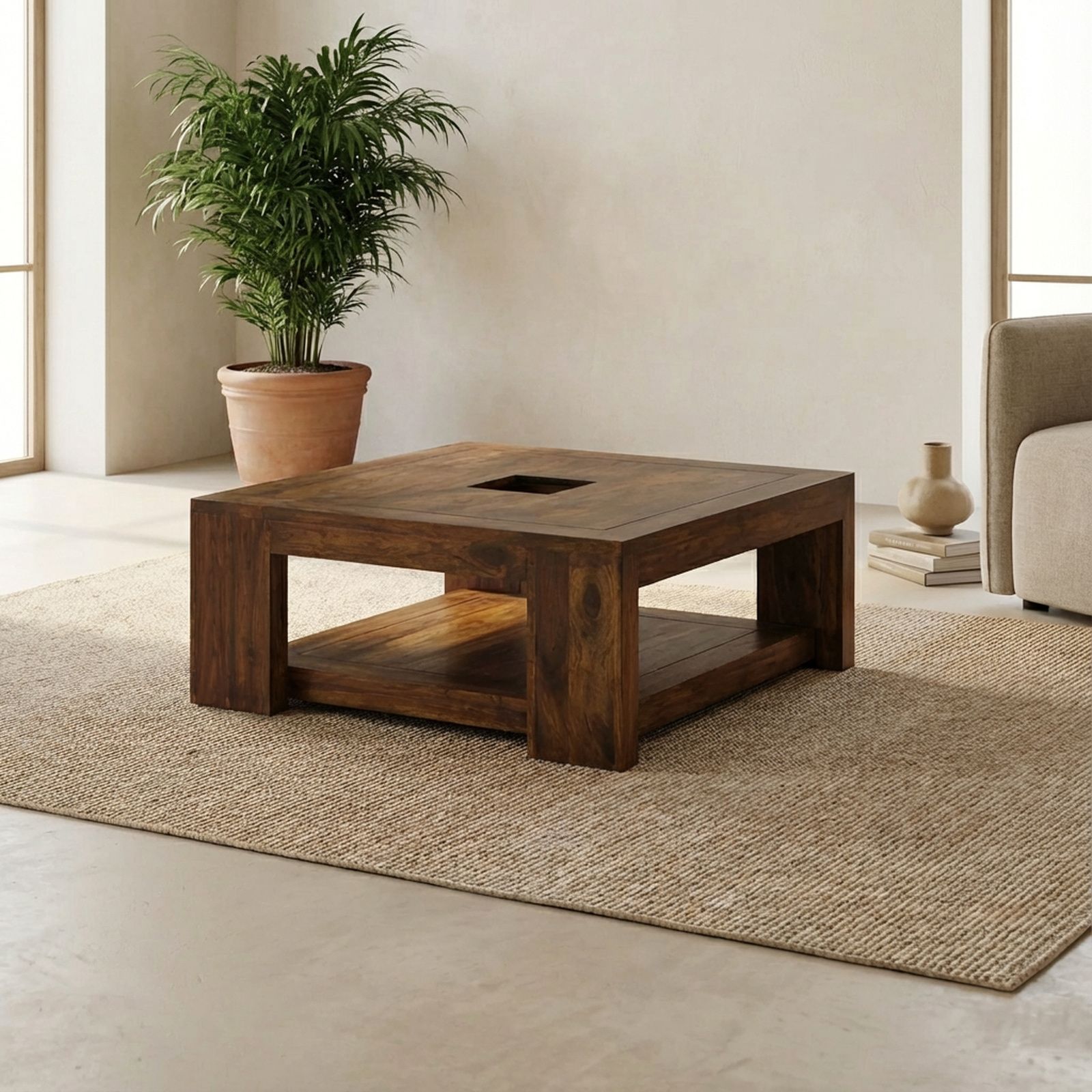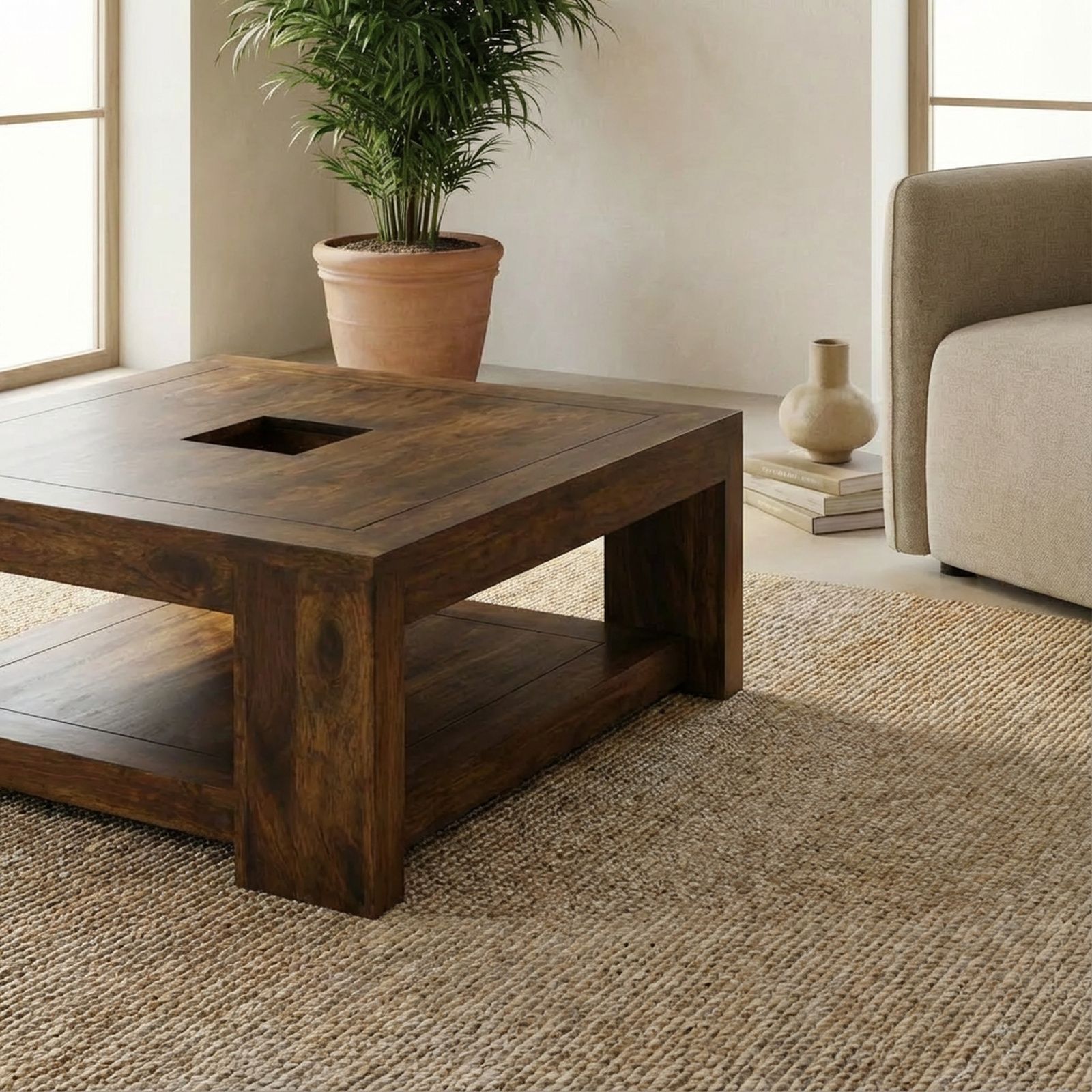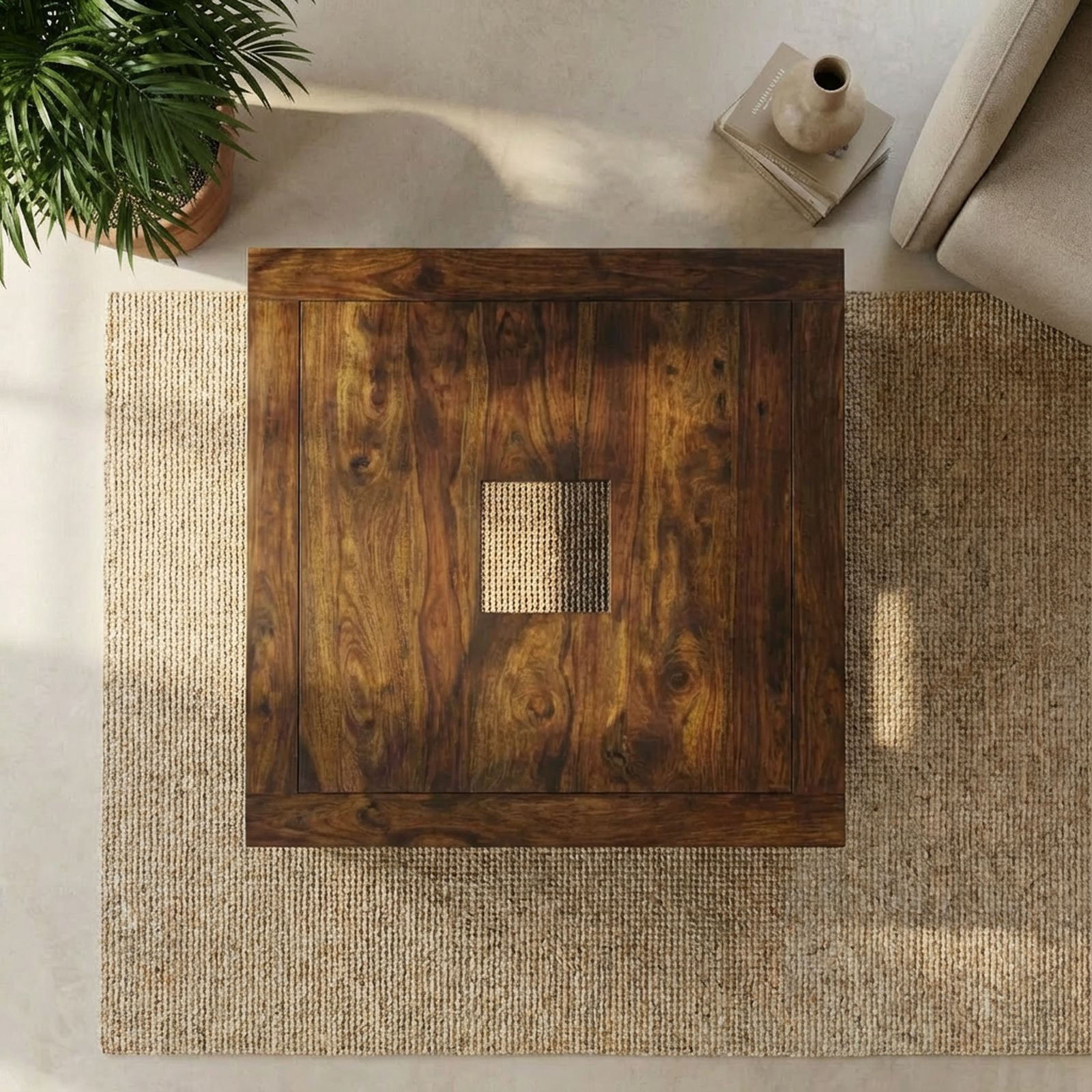 Si vous aimez les meubles exotiques, cette table basse ethnique Zen carrée devrait vous séduire. Elle est composée de palissandre, un bois provenant d'Inde.