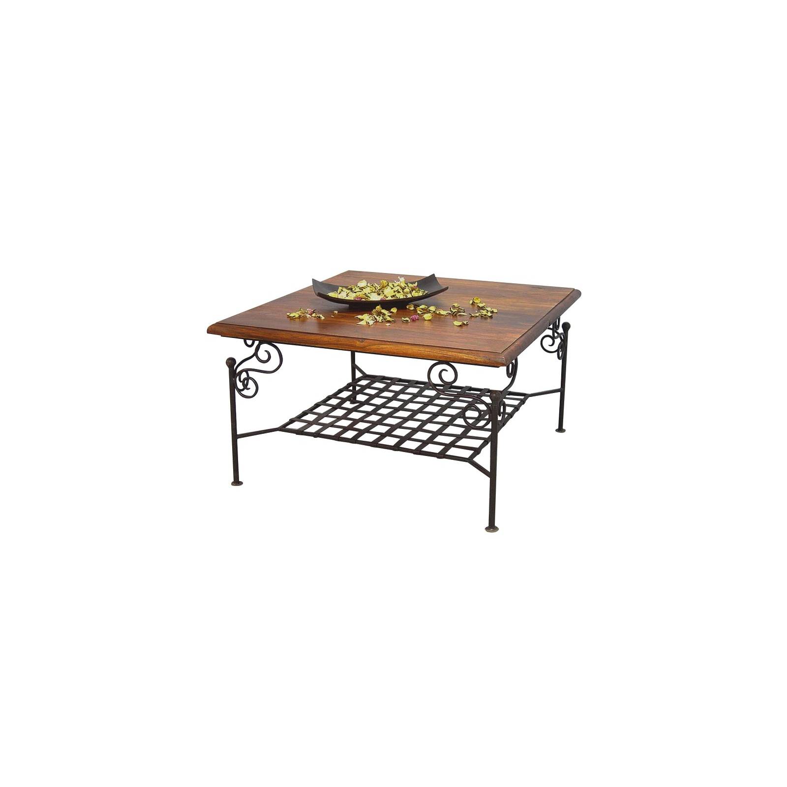 Lire l'avis Vous aimerez les formes romantiques de cette table basse fer forgé et bois traditionnelle, composée d'un plateau en palissandre et d'une structure ornementée en fer forgé.