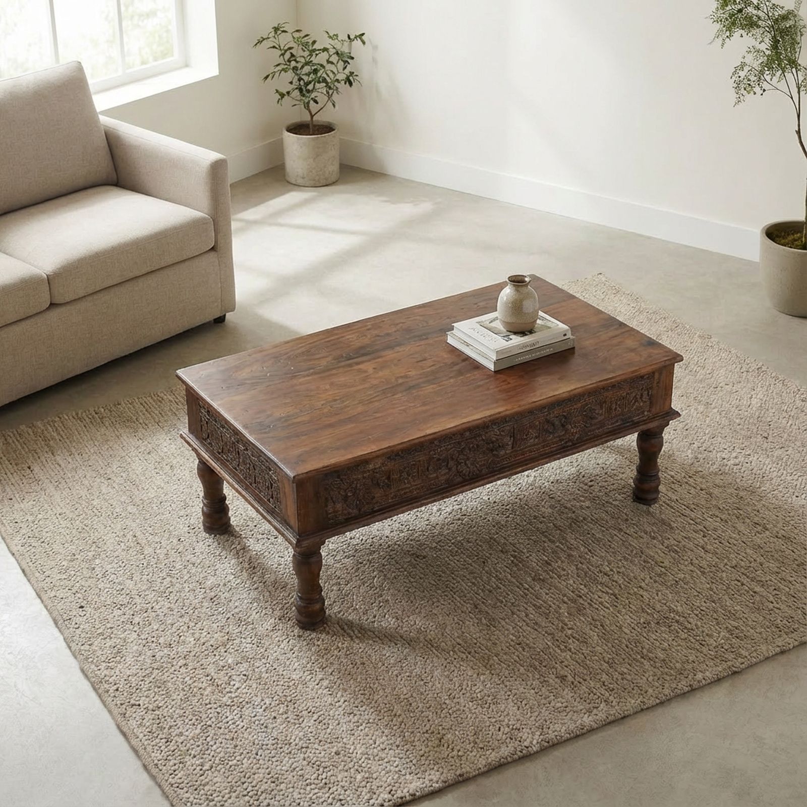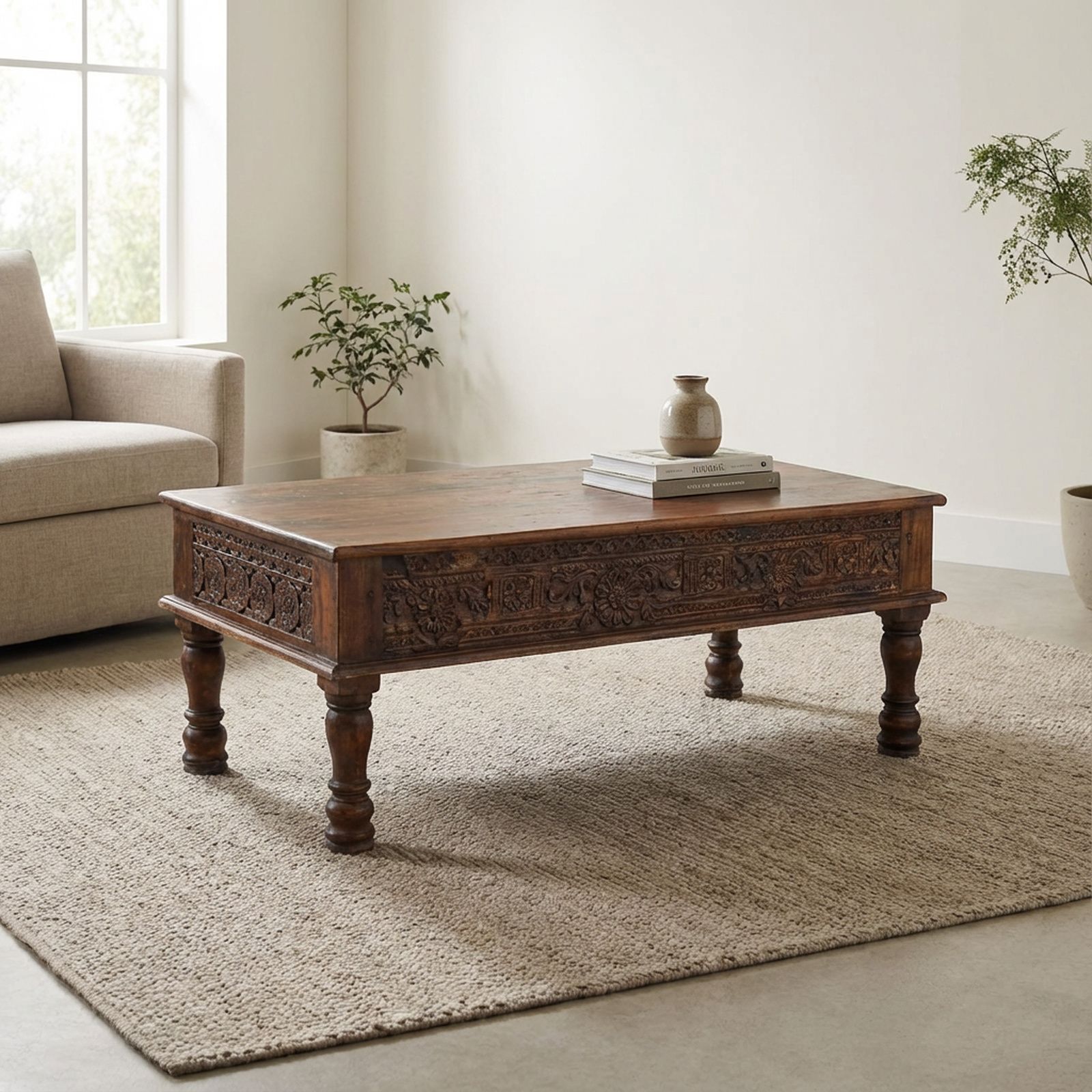 Choisissez une décoration indienne pour votre séjour et plongez au coeur des villes colorées d'Inde avec cette table basse indienne rectangulaire sculptée de la collection New Delhi.
