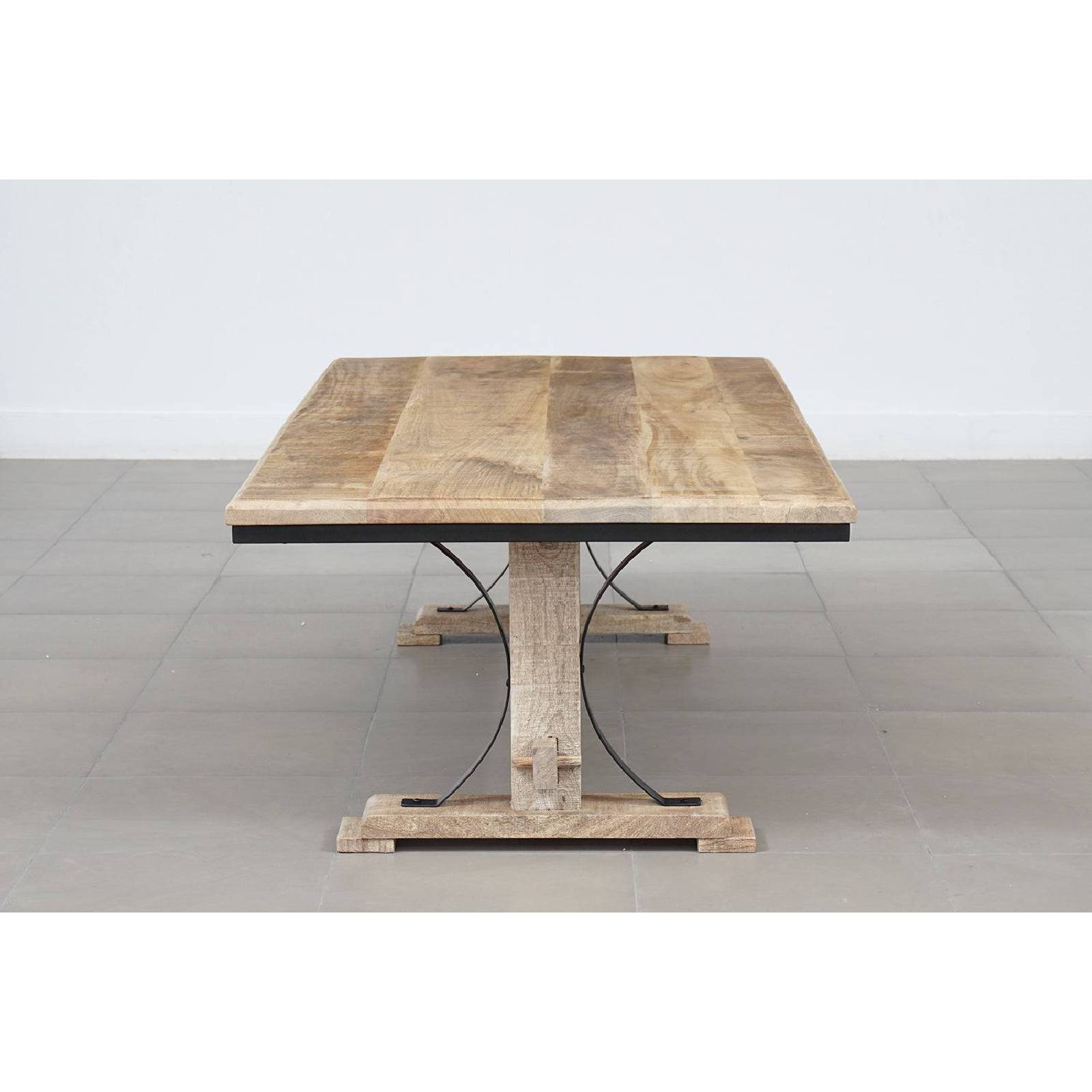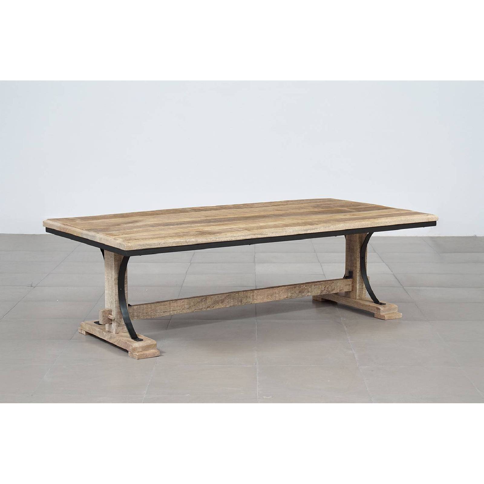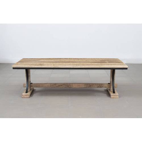 La table basse rectangle 130 cm est fabriquée en manguier massif et métal et témoigne du savoir-faire artisanal exceptionnel utilisé pour sa création.