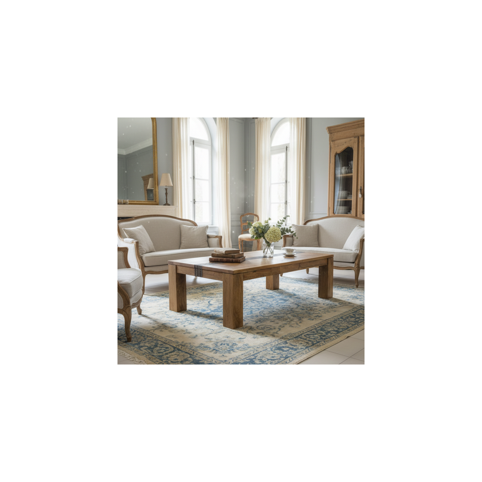 Son design repose sur des pieds droits à section carrée, qui lui confèrent une silhouette géométrique épurée, équilibrant subtilement les détails décoratifs avec une allure contemporaine et minimaliste. Sa structure démontable au niveau des pieds facilite le transport et le montage, tout en garantissant une excellente stabilité et une solidité durable.