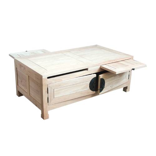 Avec sa niche et ses petits plateaux, cette table basse rectangulaire bois d'inspiration chinoise est pratique pour prendre le thé et ranger vos magasines ! 100% hévéa massif.