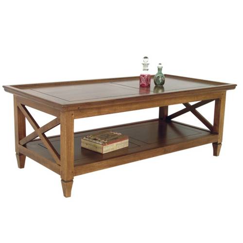 Cette table basse rectangulaire bois a un charme fou avec sa structure aux motifs de croisillons et son plateau décoré. Elle peut être déclinée en plusieurs coloris.