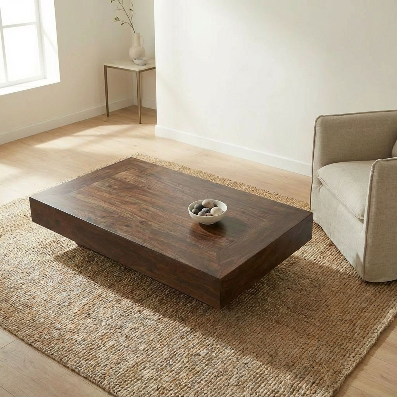 Lire les 4 avis Adoptez l'esprit zen avec cette magnifique table basse rectangulaire design en bois exotique, composée de formes géométriques qui lui donnent une allure épurée.
