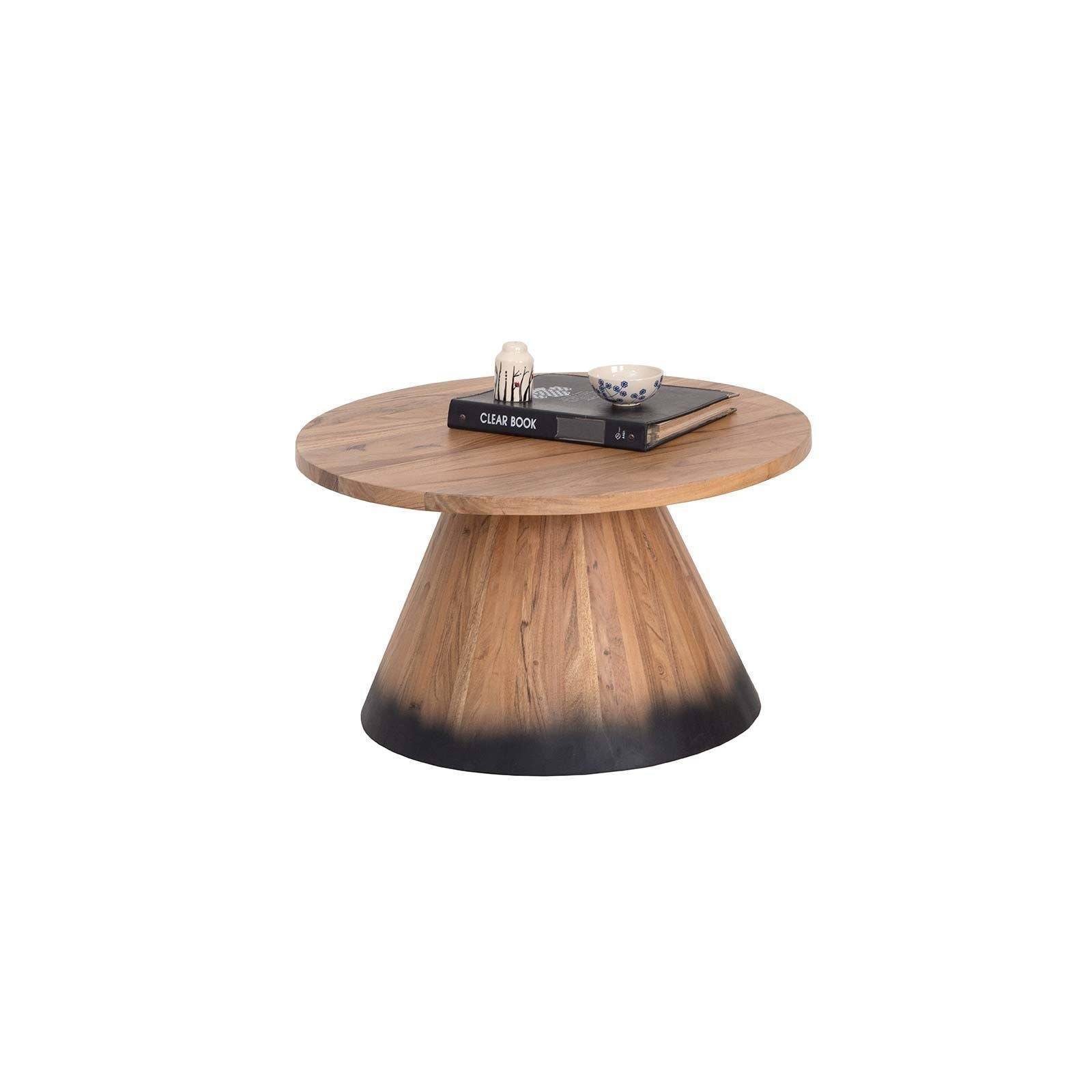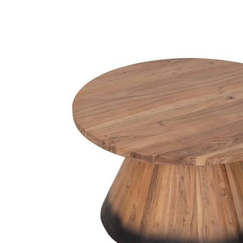 Craquez pour l'élégance intemporelle de table basse ronde bois 80 cm, son design bicolore marrie l'authenticité de l'acacia à la modernité du métal.