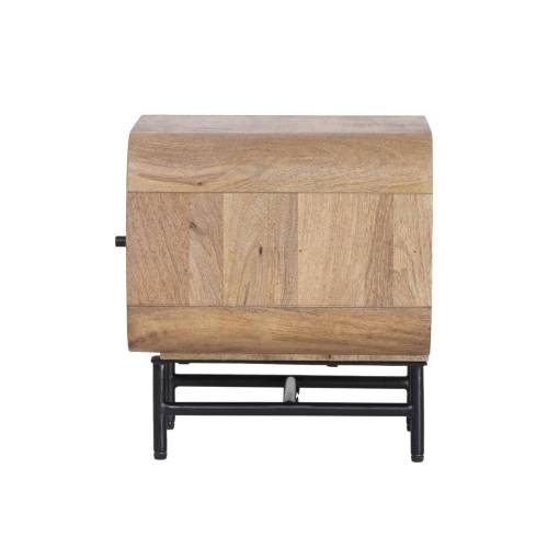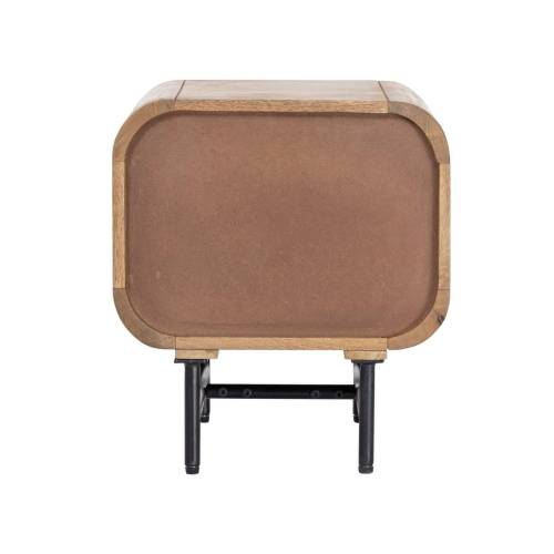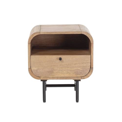 The table's practical design features a spacious drawer and an open shelf, providing ample storage for your nighttime essentials. The sleek black metal frame provides sturdy support and adds a contemporary touch to the piece, making it both functional and stylish. Whether holding a bedside lamp, books, or personal items, this nightstand blends seamlessly into a variety of interior styles.