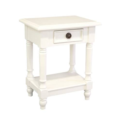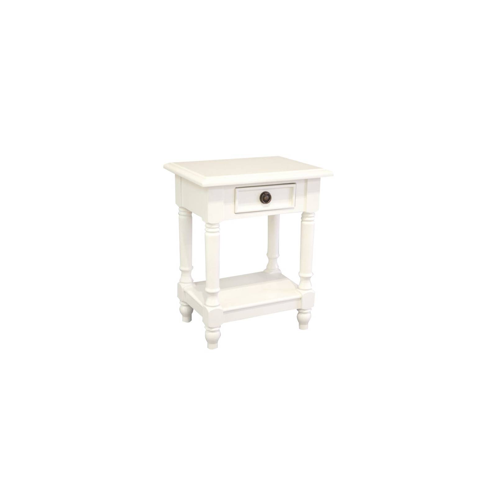 Cette belle table de chevet blanche en bois massif est un meuble classique et décoratif qui trouvera sa place aux côtés de votre lit pour y installer votre lampe de chevet.