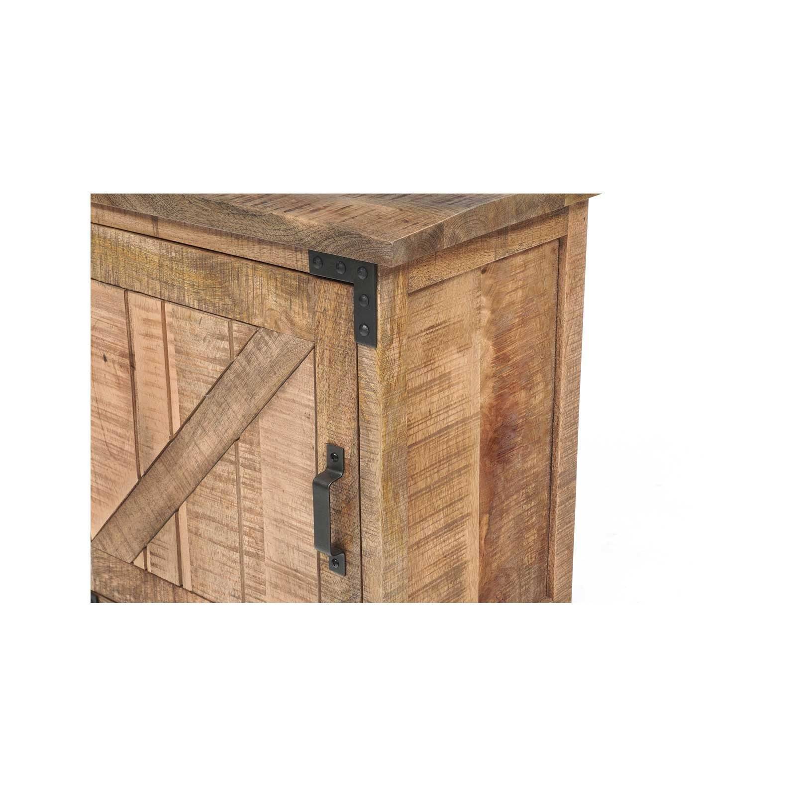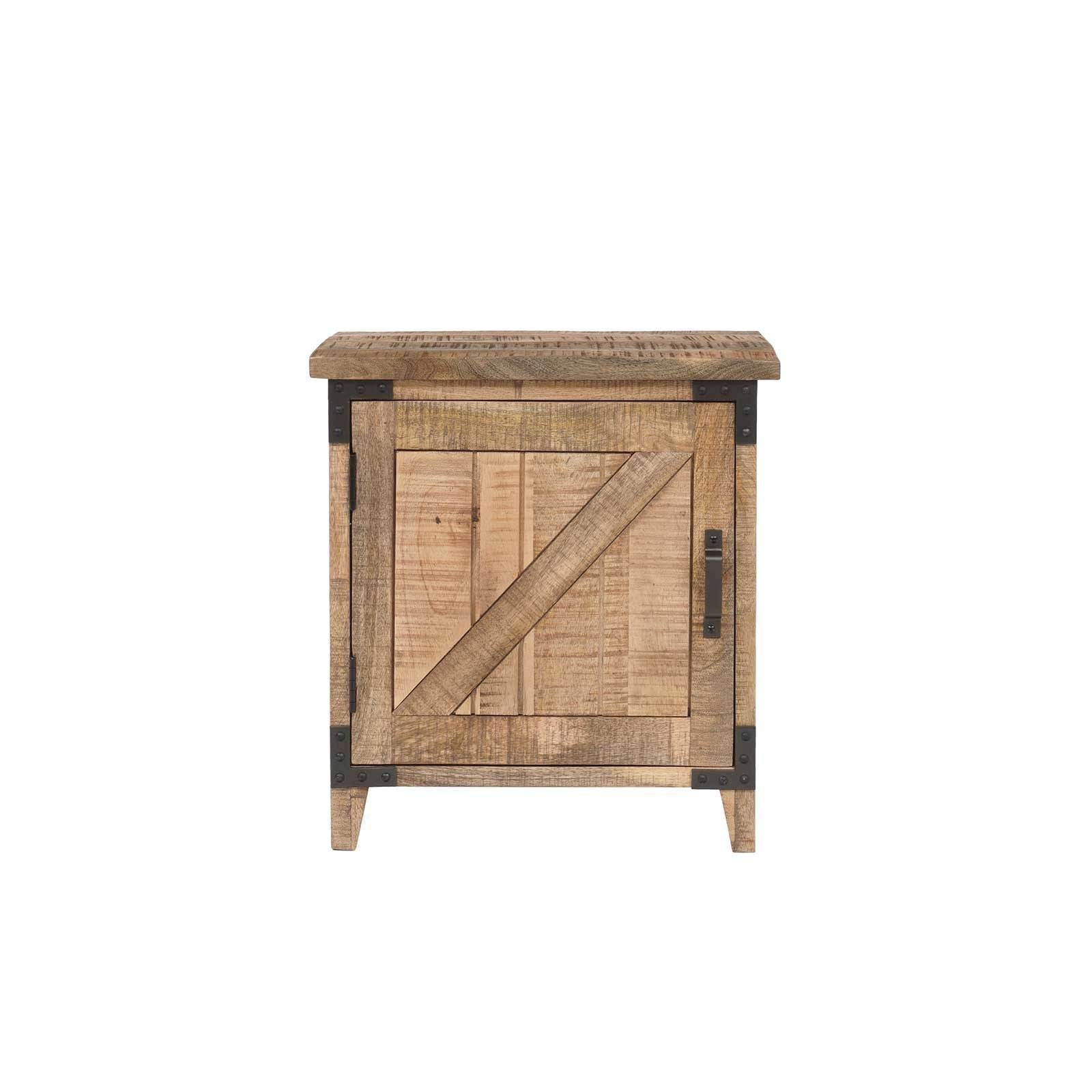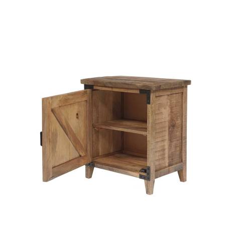 La table de chevet droite de la collection Manguier Brut incarne l'élégance rustique car fabriquée avec soin à partir de manguier massif, MDF et métal.
