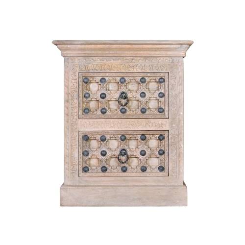 Les ornements en bronze, minutieusement travaillés, ajoutent une touche de sophistication et de luxe, tout en soulignant l'authenticité de son design. Pratique et fonctionnelle, cette table de chevet offre un espace de rangement pratique pour vos objets de nuit essentiels. Que ce soit pour poser un livre, une lampe ou garder à portée de main vos effets personnels, cette table de chevet devient un compagnon de confiance dans votre espace de repos. Avec la table de chevet en manguier de la collection Manguier Jaipur Naturel, vous apportez une touche exotique et élégante à votre chambre, créant un espace où l'art, la tradition et la fonctionnalité se marient harmonieusement.
