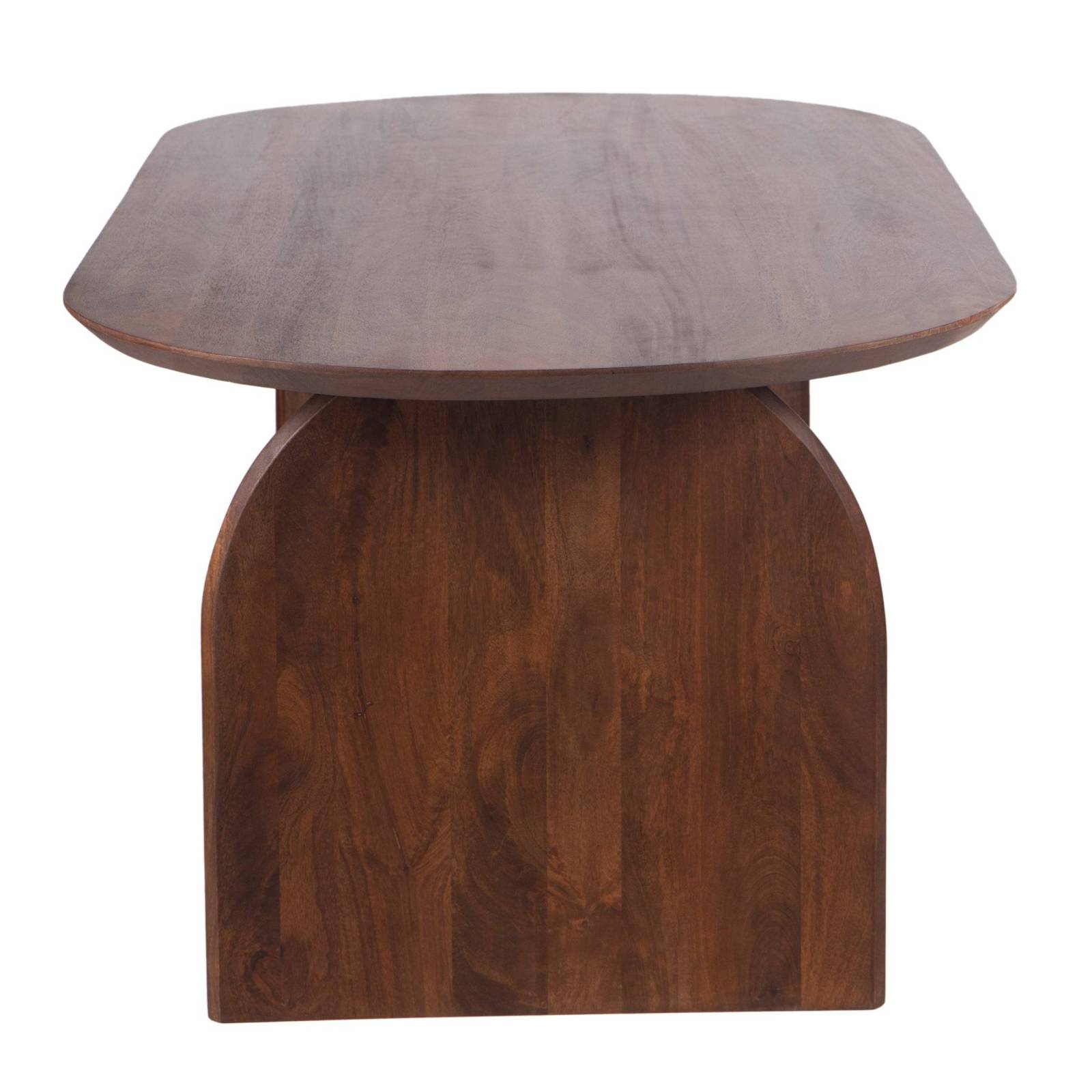 La table présente un plateau rectangulaire allongé aux bords arrondis, offrant une surface spacieuse idéale pour les repas en famille, les réceptions ou les moments conviviaux du quotidien. Elle repose sur deux larges pieds en panneaux courbés, qui reprennent les lignes épurées de la table tout en lui conférant une présence sculpturale. Leur disposition assure un équilibre visuel tout en optimisant l’espace pour les jambes et le confort d’utilisation.