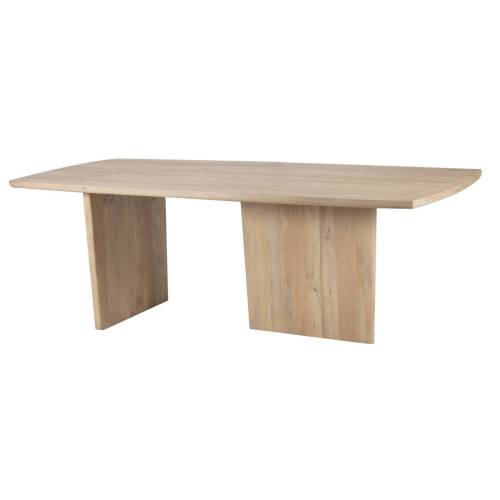 La table présente un plateau rectangulaire allongé aux bords arrondis, offrant une surface spacieuse idéale pour les repas en famille, les réceptions ou les moments conviviaux du quotidien. Elle repose sur deux larges pieds en panneaux courbés, qui reprennent les lignes épurées de la table tout en lui conférant une présence sculpturale. Leur disposition assure un équilibre visuel tout en optimisant l’espace pour les jambes et le confort d’utilisation.