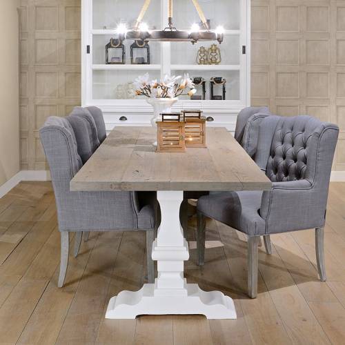 Cette grande table de salle vous donnera l'occasion de réunir votre famille dans une atmosphère conviviale et pleine de charme. Le style classique rétro de cette table donnera à votre salle de repas une ambiance raffinée, évoquant la campagne et son mobilier rustique. Il ne vous reste plus qu'à placer un beau vase fleuri au milieu de votre table et à utiliser un chemin de table en lin pour vous plonger dans un esprit champêtre !