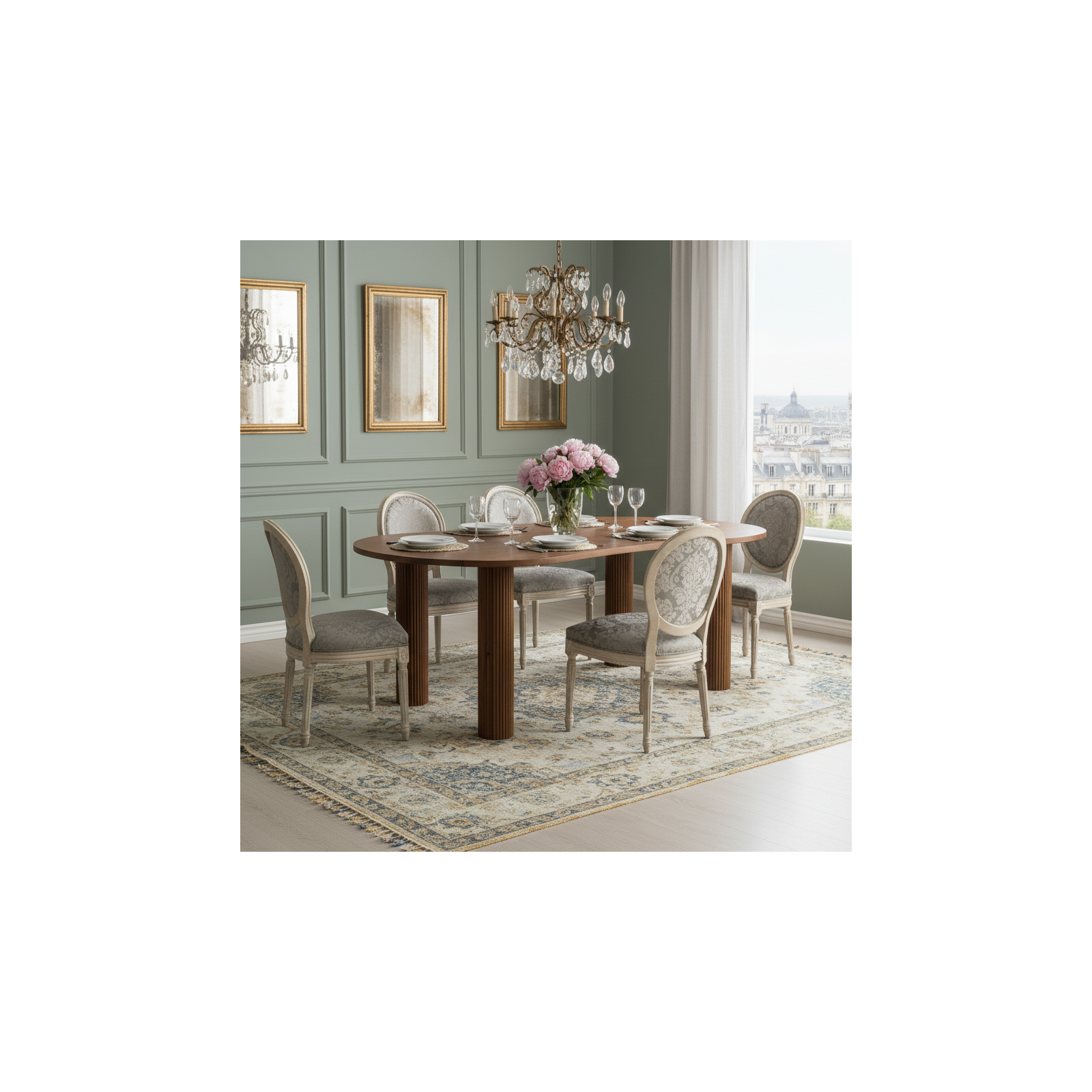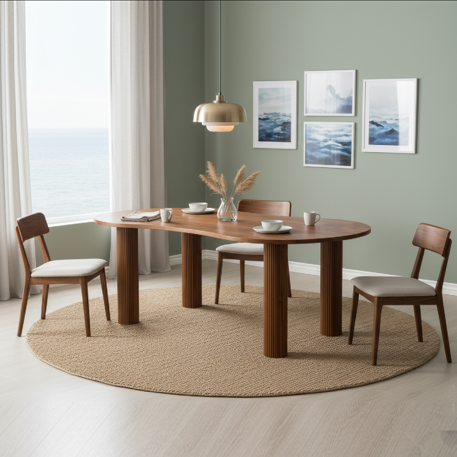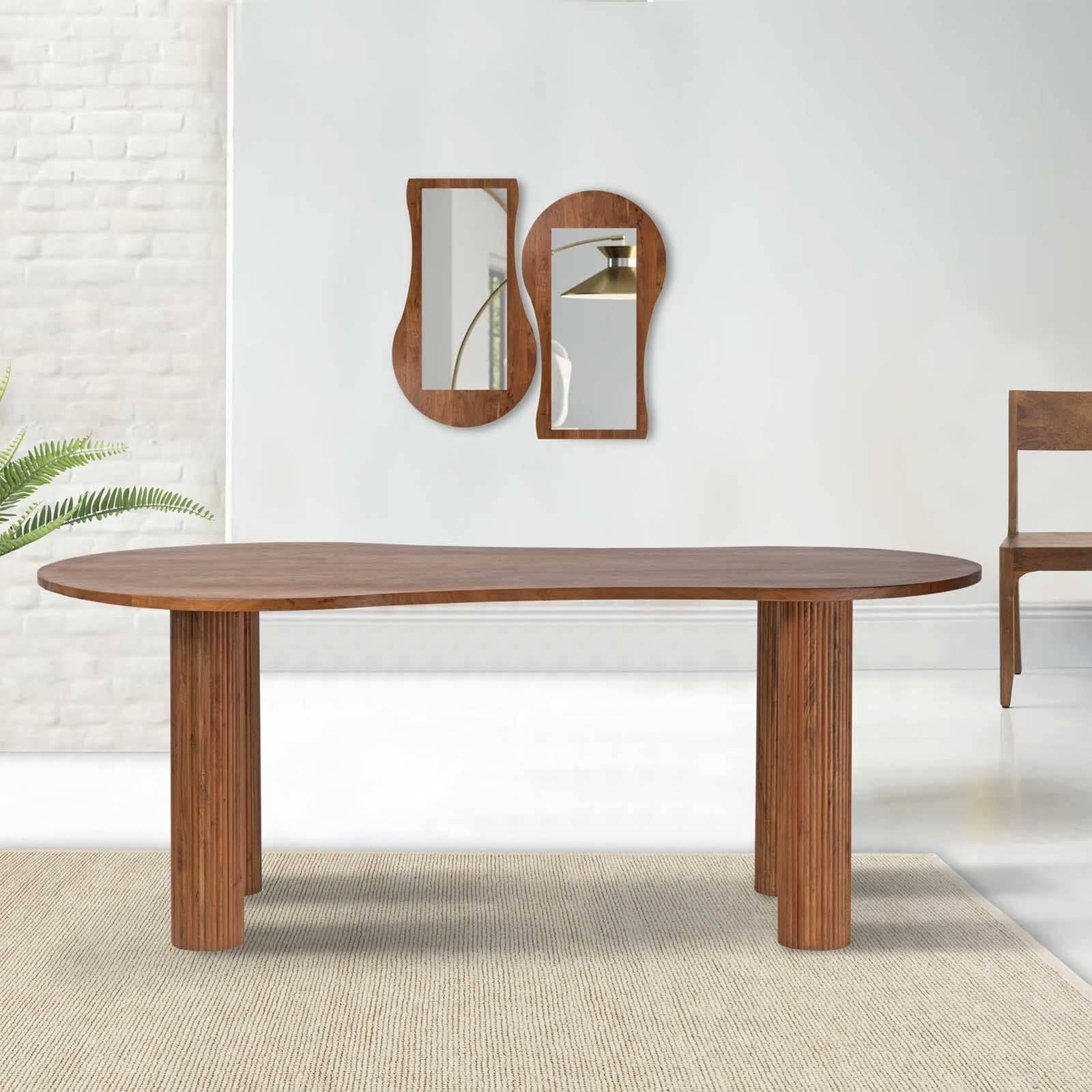 Découvrez l'originalité et l'élégance intemporelle avec la table de repas ovale 3/4 pieds de la collection Acacia Dareels, taillée dans l'acacia massif.