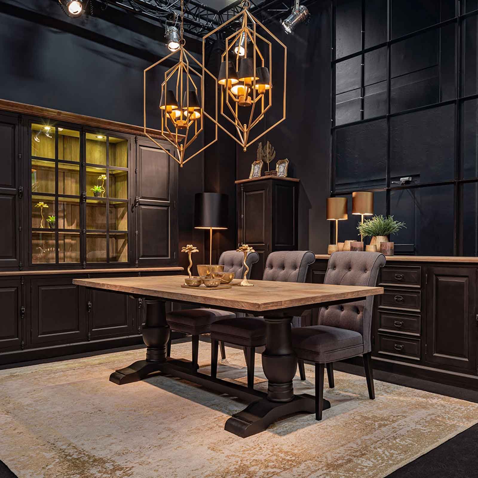 Impossible de rester indifférent à cette table de repas bicolore coiffée d'un superbe plateau en teck que porte un solide piétement en bois massif. Inspirée du style baroque, elle propose un design plein d'allure qui revendique ses origines classiques auxquelles s'ajoutent avec naturel des caractéristiques résolument tendances. À ce titre, vous serez conquis par l'association des couleurs : le noir et la blondeur naturelle du teck qui sublime un veinage chaleureux et authentique.