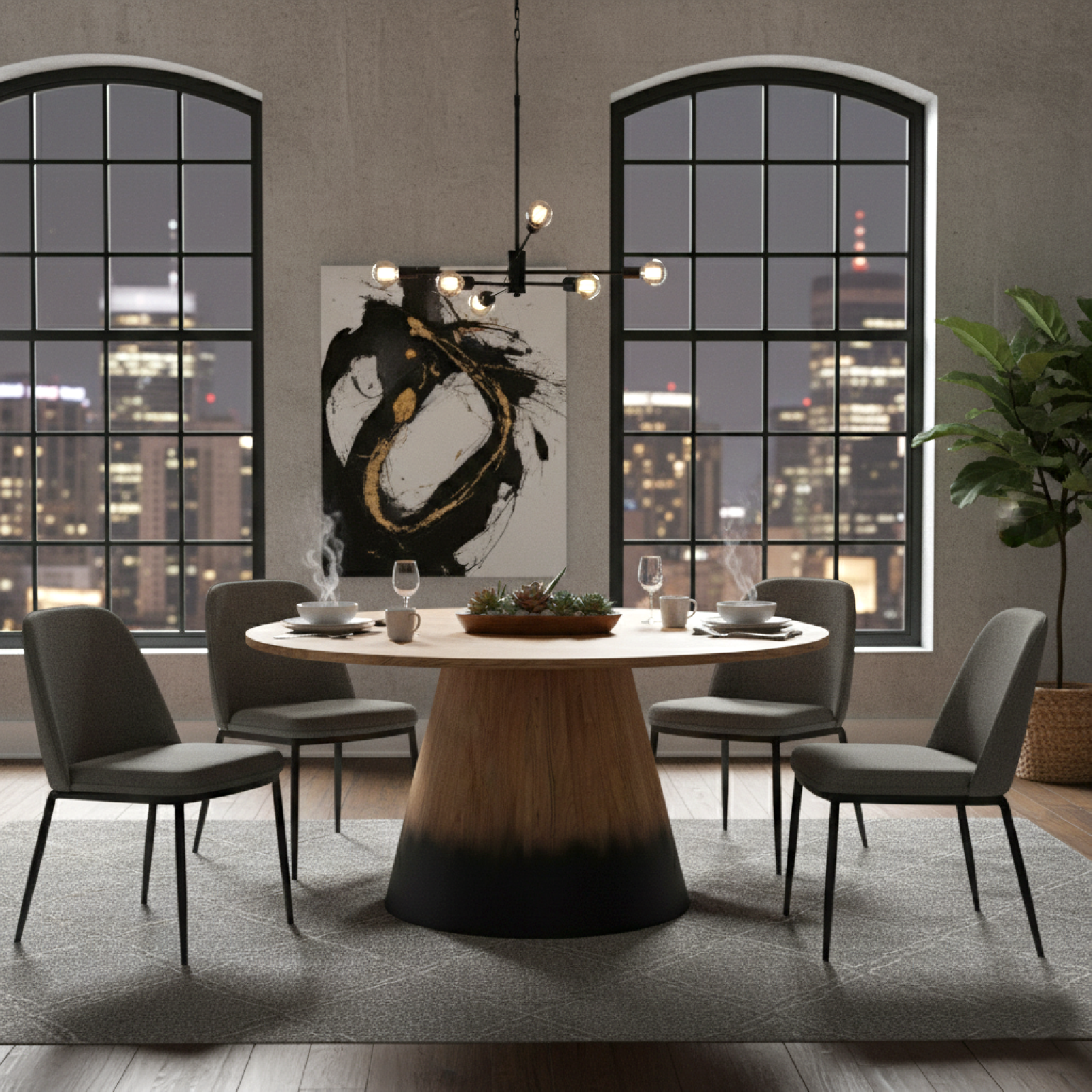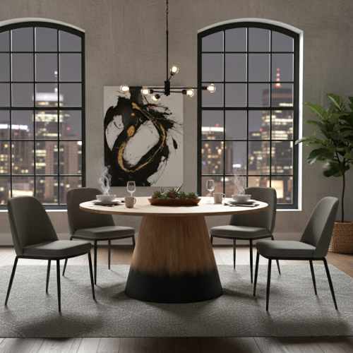 Découvrez l'élégance et la durabilité avec la table de repas ronde 140 cm, un meuble qui fusionne harmonieusement l'acacia avec la robustesse du métal.