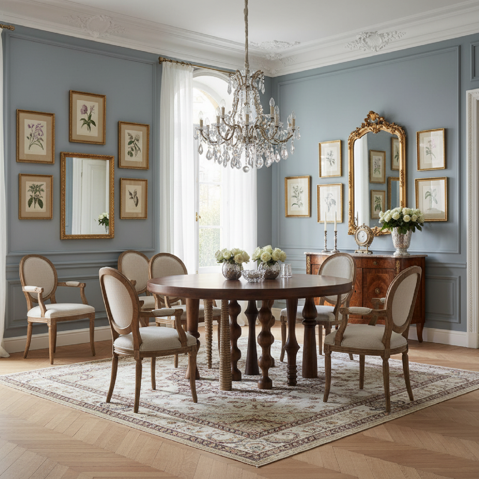 Avec son design épuré et élégant, cette table ronde est parfaite pour accueillir des repas conviviaux en famille ou entre amis. Sa surface spacieuse permet de disposer confortablement plusieurs couverts et plats, tout en laissant de la place pour des décorations ou des centres de table. La combinaison de pieds sculptés distinctifs donne à cette table une allure unique et sophistiquée.