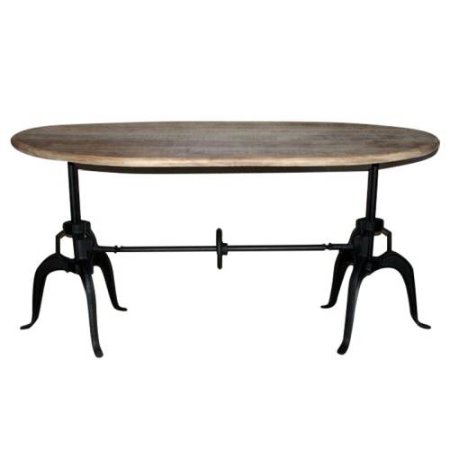 Cette impressionnante table ovale industrielle a une particularité : elle est réglable en hauteur grâce à un système de pieds s'inspirant des formes du mobilier du début du XXème siècle.