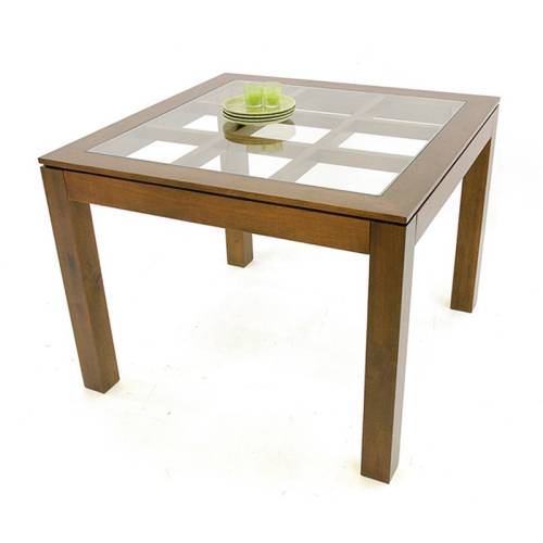 Cette jolie table de salle vitrée carrée comporte une structure en hévéa massif et un plateau en verre. On aime son design moderne et tendance !