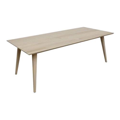 Cette belle table de repas au style scandinave possède des pieds fins fuselés, typiques de ce design rétro. Elle est entièrement fabriquée à partir de bois massif, du frêne.