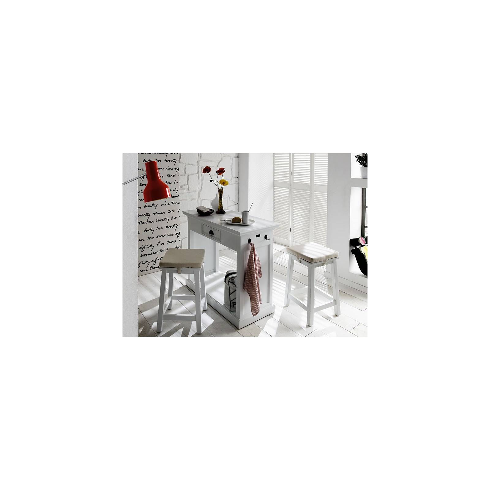 Ravissant petit tabouret blanc et bois d'acajou massif qui conviendra aussi bien à la salle à manger qu'à la cuisine. Il vous servira de siège d'appoint et participera à créer une atmosphère romantique à votre intérieur du fait de ses lignes classiques. Composé à 100% d'acajou massif peint en blanc, ce tabouret blanc est caractérisé par une finition antique, avec les arrêtes brossées pour leur donner un rendu vieilli. Meuble de qualité, ce tabouret blanc et bois est éco-certifié (Label Indonesian Legal Wood).