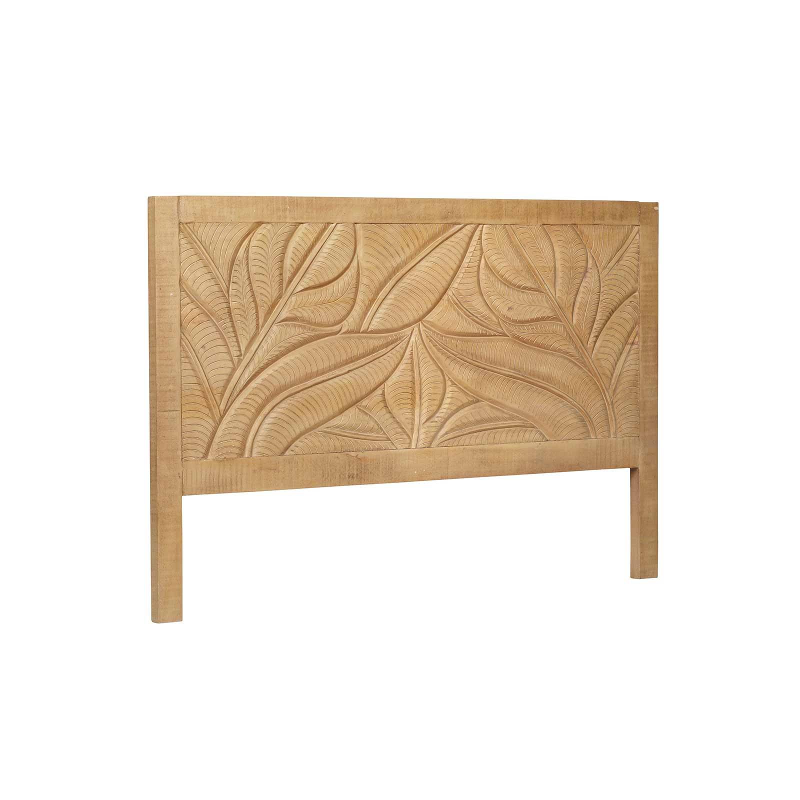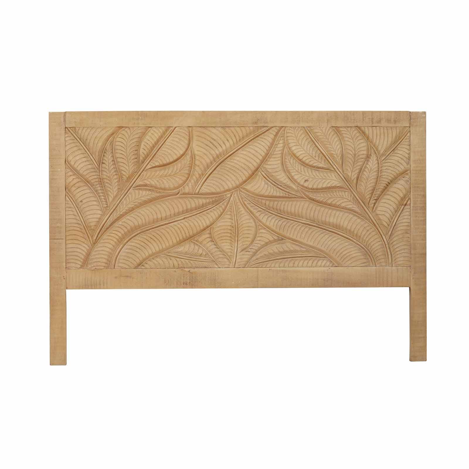 Les sculptures exquises représentant des végétaux, réalisées à la main avec une grande attention aux détails, apportent une esthétique organique et raffinée à la tête de lit. Chaque motif sculpté témoigne d'un savoir-faire artisanal exceptionnel et ajoute une dimension artistique à l'ensemble. Grâce à sa construction solide en manguier massif, cette tête de lit offre non seulement un support robuste pour votre matelas, mais elle crée également une atmosphère chaleureuse et accueillante dans votre chambre.