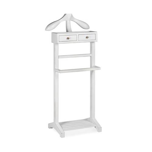 Ce petit meuble original et rétro est un valet. Il sert à déposer des vêtements pour ne pas les froisser en vue de s'habiller le lendemain matin. Élégant, ce modèle de valet de chambre blanc en Mindy Hatiya est en bois massif.