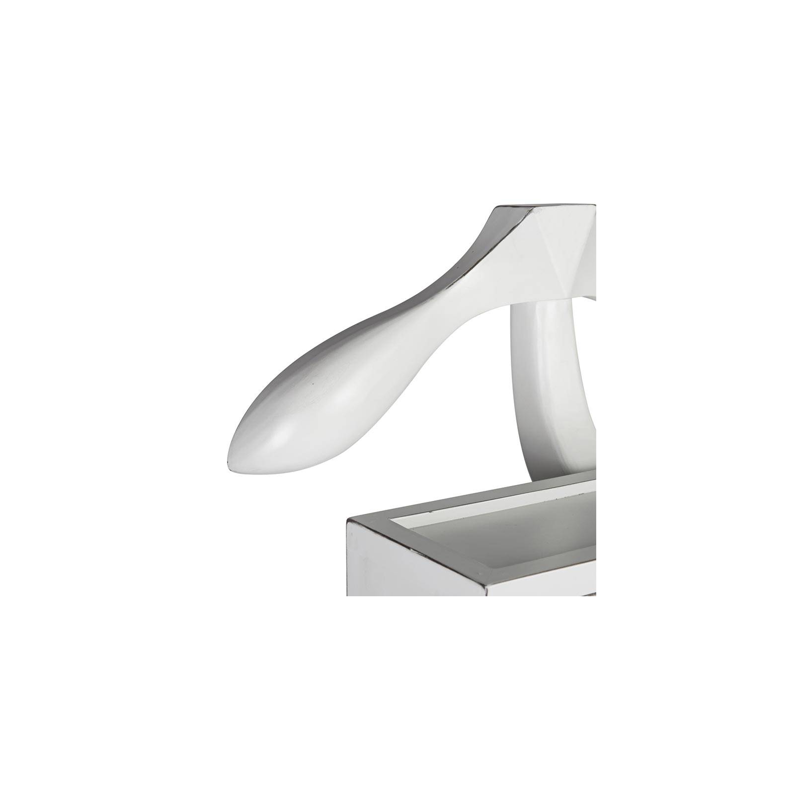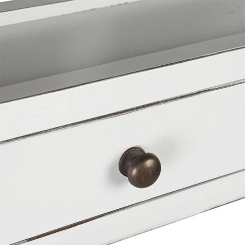 Ce valet de chambre blanc est un petit meuble de rangement très pratique et élégant. Son bois massif a été peint en blanc mais avec une petite particularité : une finition manuelle a été appliquée à la peinture pour qu'elle prenne cet aspect vieilli. Une touche rétro sympa ! Du côté des poignées, elles ont une apparence de bronze et sont en métal.