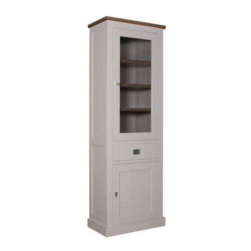 Elle n'est certes pas une pièce maîtresse de la maison, mais cette vitrine en chêne et pin massif deviendra vite un incontournable de votre intérieur. Difficile de résister à ce design intemporel qui puise ses références dans l'allure du style classique tout en proposant un design résolument moderne. Vous apprécierez le contraste des deux teintes que vous pourrez combiner selon vos préférences, grâce à un large choix de couleurs. Amoureux du style romantique et de l'esprit cottage, privilégiez le blanc et la blondeur naturelle du chêne. Pour un intérieur plus contemporain, d'autres coloris sont disponibles, tandis qu'une troisième teinte est envisageable pour dissocier l'intérieur de l'extérieur.