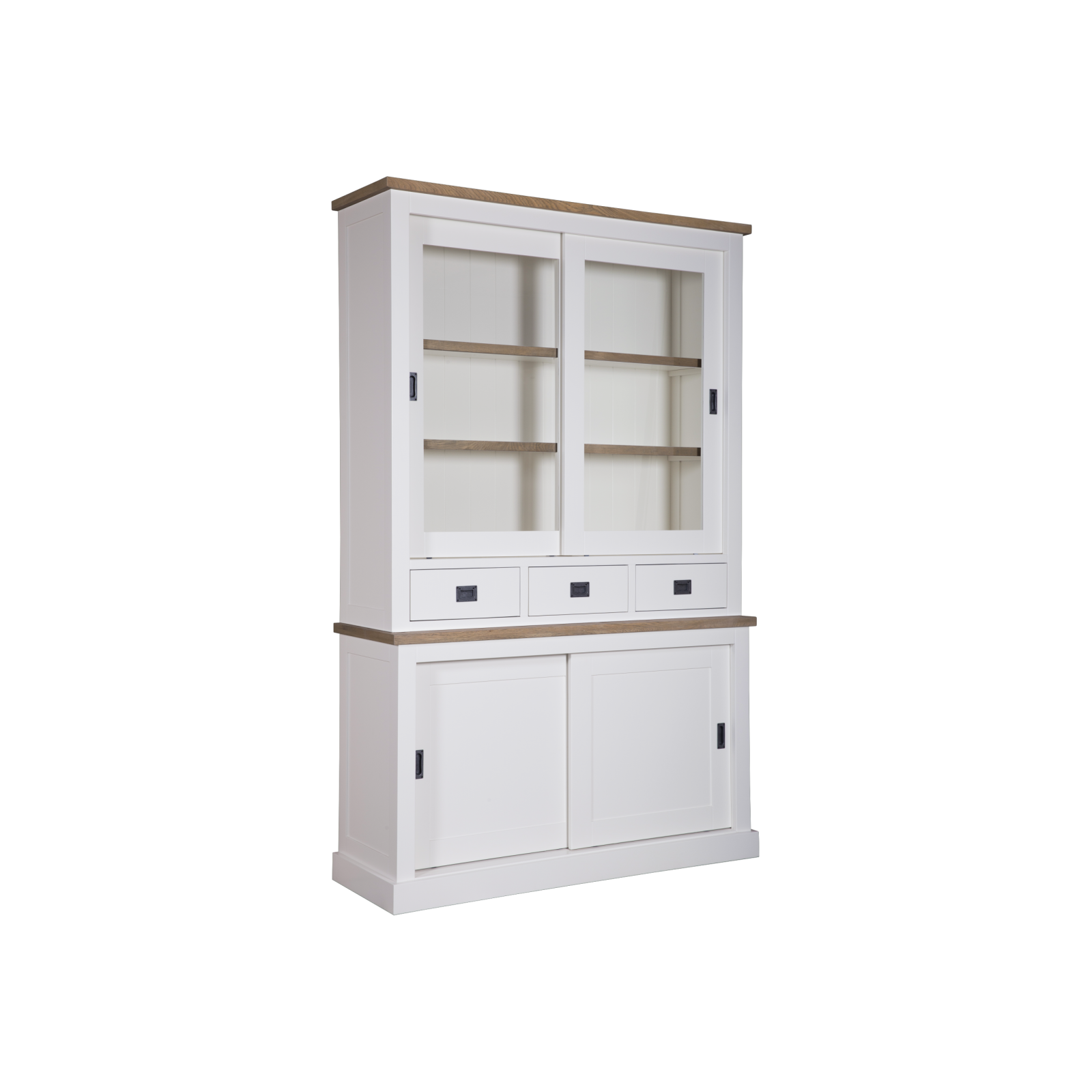 Les références aux meubles de style traditionnel sont un atout essentiel cette vitrine bicolore fabriquée artisanalement. Son ossature en pin massif, complétée par une corniche et des bordures en bois de chêne, lui garantit, en outre, une solidité à l'épreuve du temps. Solide et esthétique, cette bibliothèque est aussi un meuble fonctionnel qui vous offrira de belles perspectives déco grâce à sa partie vitrée qui accueille sur ses deux étagères assiettes colorées, objets et bibelots, dotés d'une âme. Au-dessous, vous pourrez ranger votre linge de maison ou toute autre affaire utile à votre quotidien.
